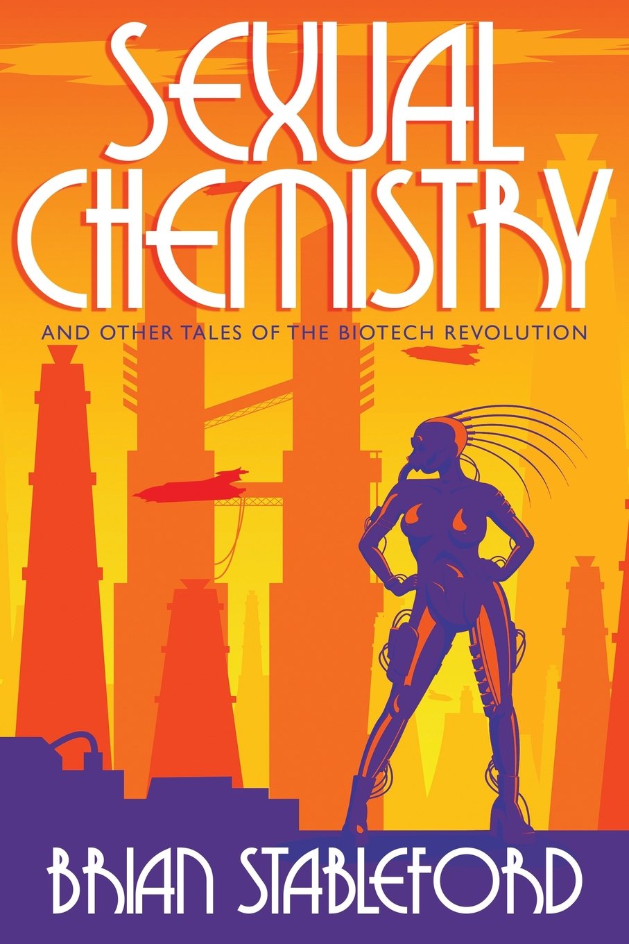Who's Been Interfering with Your Genes? In these wry, provocative, and darkly comic tales, Brain Stableford addresses the revolution in genetic engineering and explores its possible, dramatic consequences. From the present day to thousands of years hence, he offers a tantalizing glimpse into a new phase of human evolution, where new weapons can deal with our illusions, delusions, and little games of pride and malice. A potent brew of rejuvenation and jealousy, aphrodisiacs and immunity, murder and molecular mayhem, of immortality and its pitfalls, of paternity and its (unexpected) pains, these stories paint an eerily plausible picture as we hurtle towards the twenty-first century. Tingling and terrifying, sensual and sardonic, Sexual Chemistry shows that it's not just the earth that's moving when bright new technologies clash with the dark regions of human behaviour. Cover by Bruce Hogarth Published as paperback by Pocket Books (UK) in April 1993, ISBN: 0-671-71559-3 |