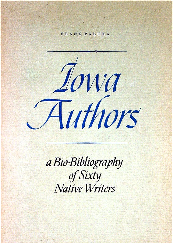 By Frank Paluka. "A Bio-bibliography of Sixty Native Writers" Iowa City, Iowa: Friends of the University of Iowa Libraries, paperback issue, green wraps, 244pp. p 18-21. [EPBLIB]