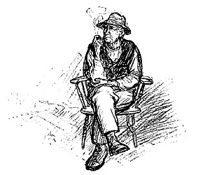 Dan was holding to the roof with his hands and feet, and at the same time trying to smoke his pipe and move the ladder, and his irascibility was great.