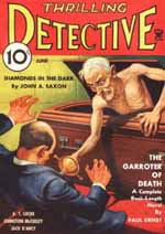 | E-texts on the net this week The Shadow in Review: There is no new Shadow review this week. Pulpgen-Online Pulps: Now with over 1000 stories online! "License To Hell" by John L. Benton from POPULAR DETECTIVE, December, 1935 An escaped convict makes a run for the Florida line. "Galloping Greyhounds" by Thomas Thursday from SUPER SPORTS, March, 1953 Featuring: Misdemeanor Murphy & Felony Jones "All year around, I am plagued by two creeps whom I couldn't forget in the Foreign Legion. So, here I am in Miami, on an exclusive vacation - but it doesn't exclude Misdemeanor Murphy and Felony Jones, after all!" "Murder Wheel" by Norman A. Daniels from SECRET AGENT "X", June, 1934 Through guarded doors, death stalked unseen - and left in its wake fiendish murders that baffled the police, killings that turned men's faces white with fear. | |||||||||||||